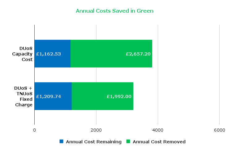 Projected DuoS + TNUoS costs exceeded £7,000 per year with the unused capacity providing no operational benefit.