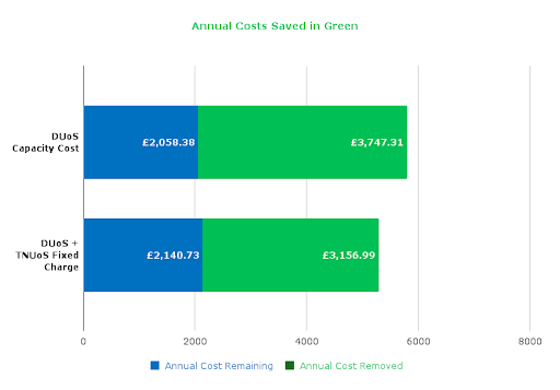 Projected DuoS + TNUoS costs exceeded £12,300 per year with the unused capacity providing no operational benefit.