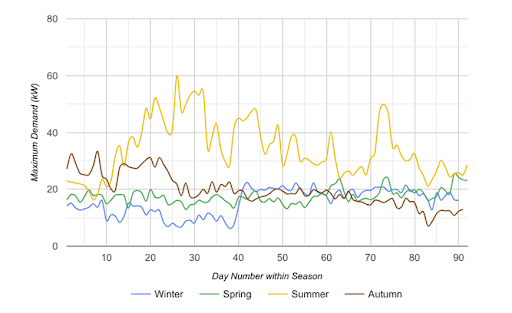 Energunite analysed one year of HH consumption data to determine the site’s true capacity requirement. This analysis identified consistency of unused capacity across the seasons: