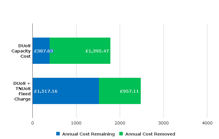 Projected DuoS + TNUoS costs exceeded £4,100 per year with the unused capacity providing no operational benefit.