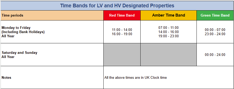 The above tariff tables illustrate how these time bands translate into materially different unit charges across Red, Amber and Green periods reinforcing the financial impact of peak-period exposure.