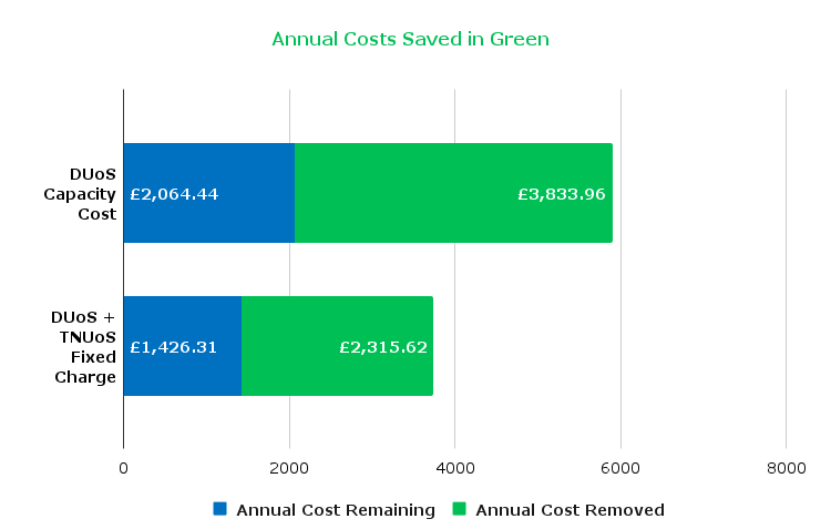 Projected DuoS + TNUoS costs exceeded £9,500 per year with the unused capacity providing no operational benefit.
